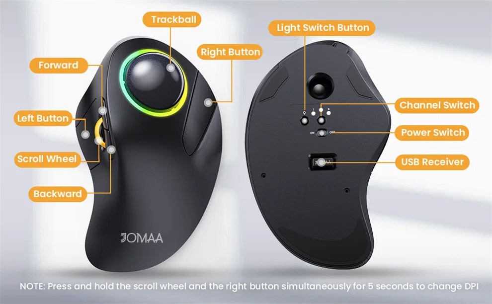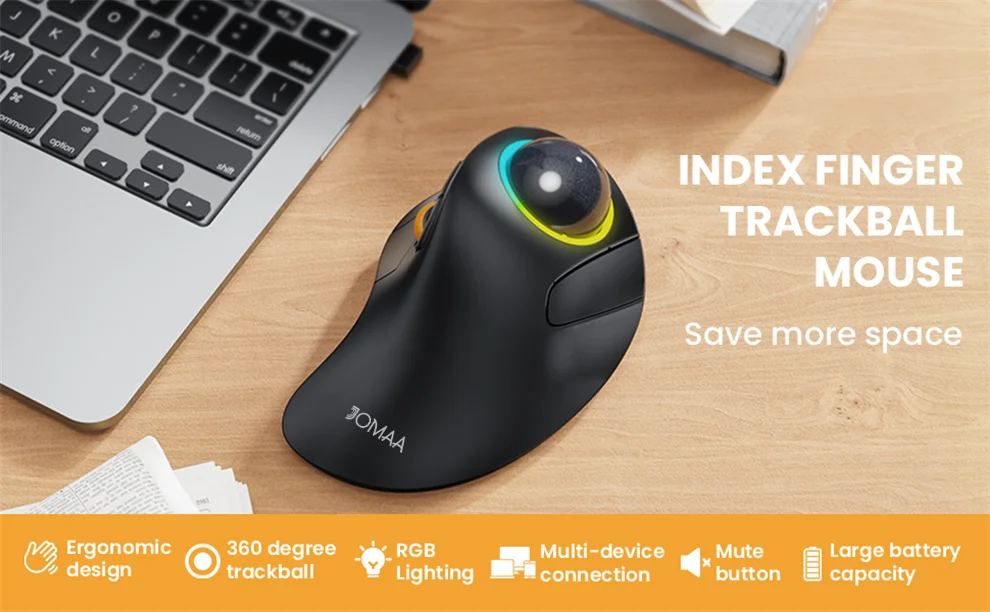 JOMAA RGB Backlit Wireless Ergonomic Rollerball Gaming Mouse