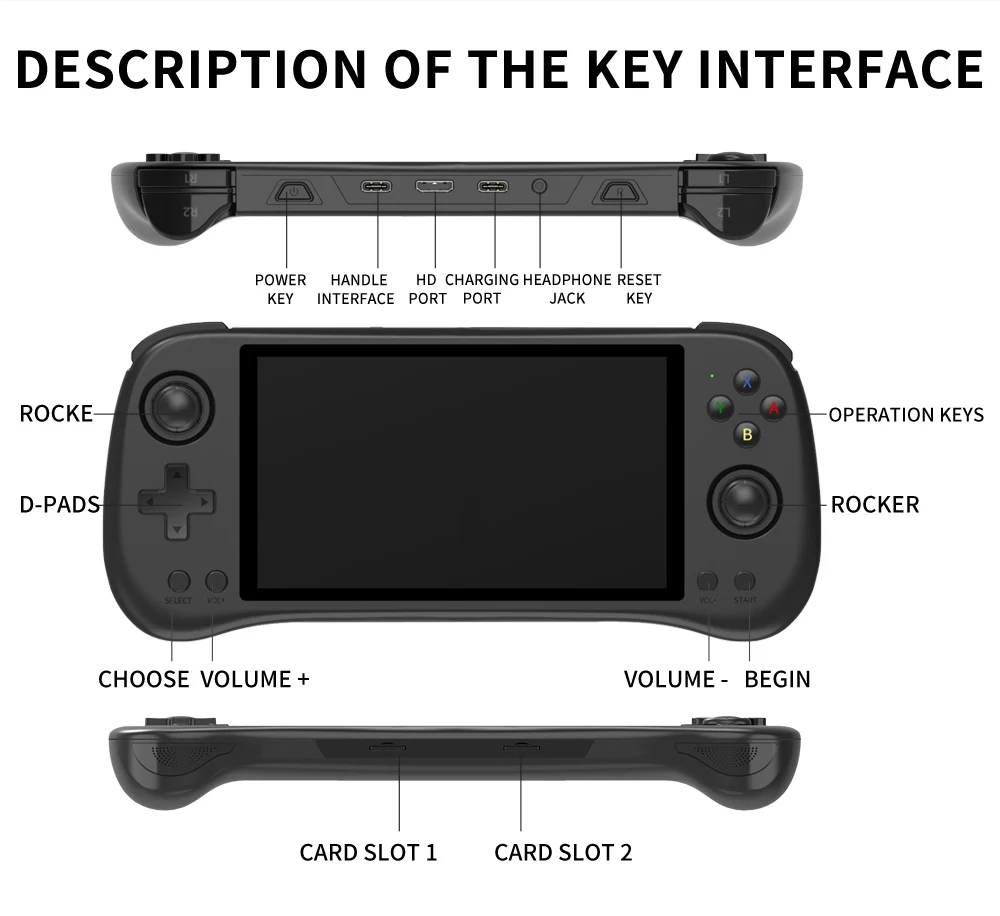 Other Features Support 3.5mm stereo headset, screen brightness setting, volume setting, sleep setting, game button setting, low power reminder, HDMI video output.